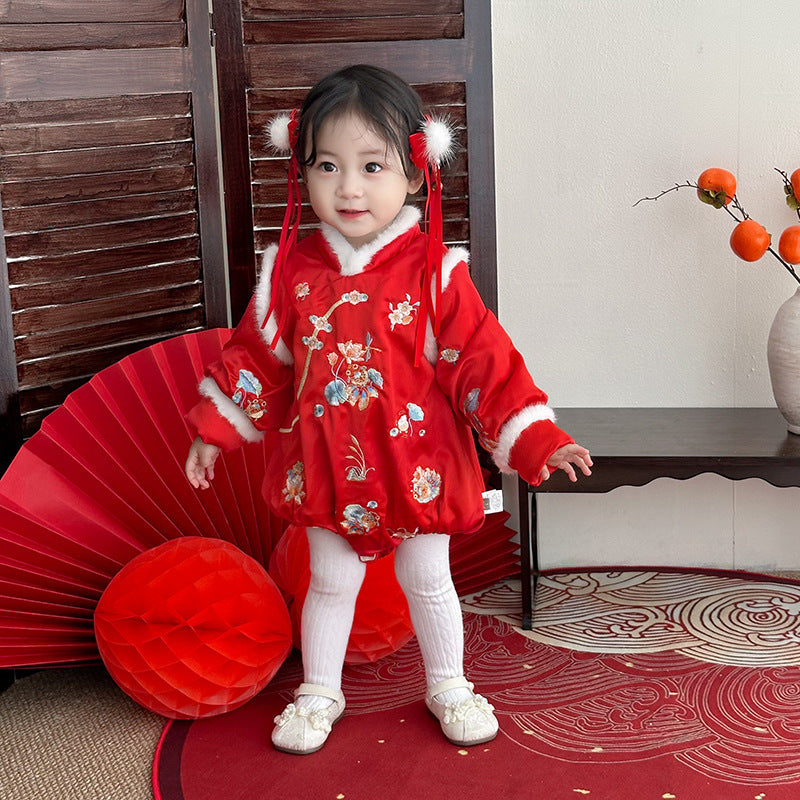 Baby Girl Winter Onesie – Triangle Print Romper Jumpsuit