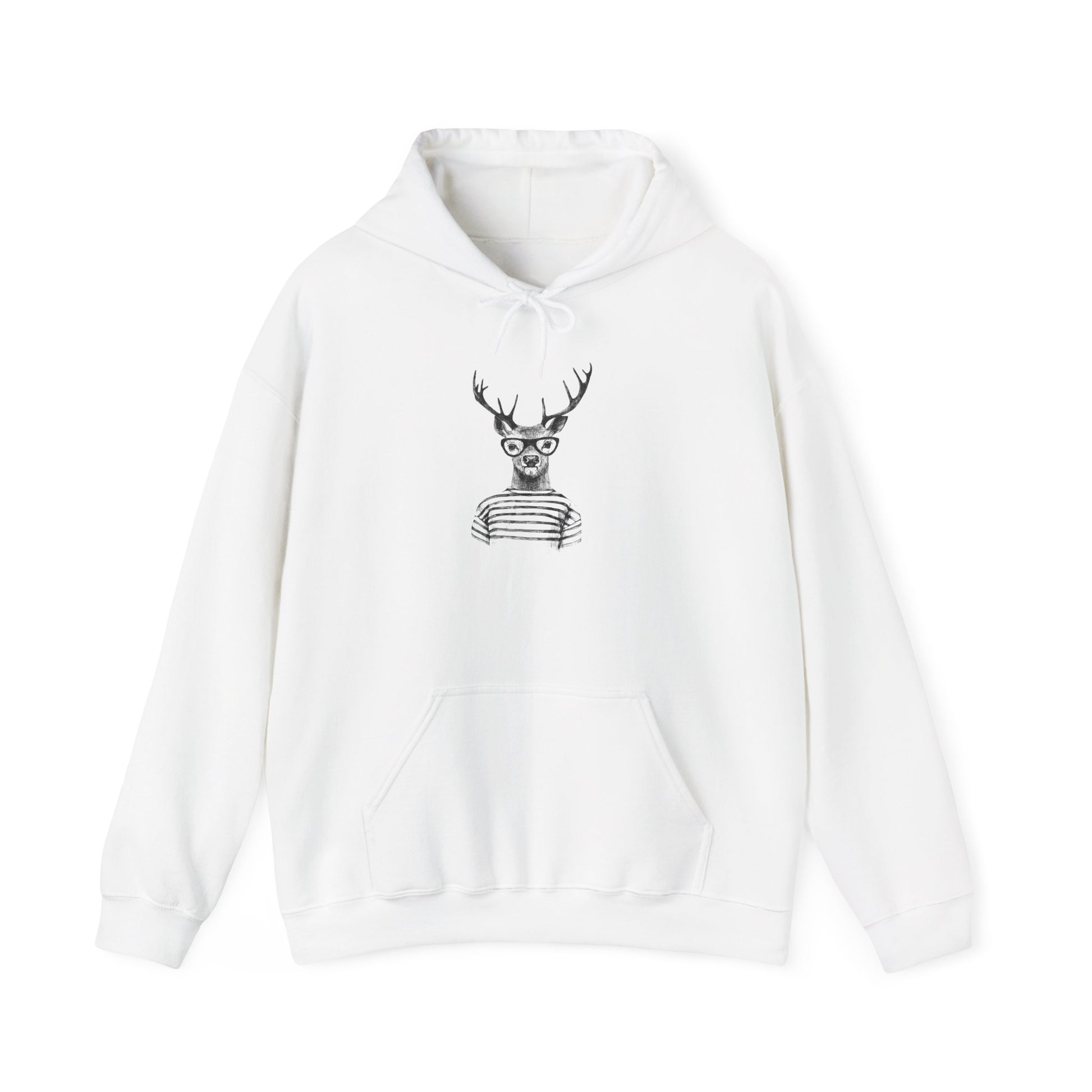 This cozy hooded sweatshirt blends quiet charm with a touch of playful irony. A finely detailed stag wearing glasses and a striped sweater sits centered on the chest — a subtle nod to cabin-core style with a modern, tongue-in-cheek twist. The back shows a stylized “Gen-Z” script across the shoulders, giving the piece personality without shouting. Soft, medium-weight fabric and a classic fit make it an easy layer for slow walks, coffee shop mornings, or late-night study sessions. It settles into routines: thrown over a tee for errands, layered for chilly commutes, or pulled on while reading by a window. Gentle, familiar, and a little witty — for people who prefer understated statements and garments that feel lived-in from day one.