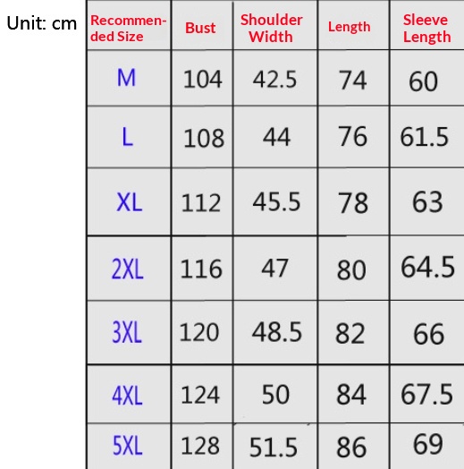 Sizes: M, L, XL, XXL, 3XL, 4XL, 5XL
