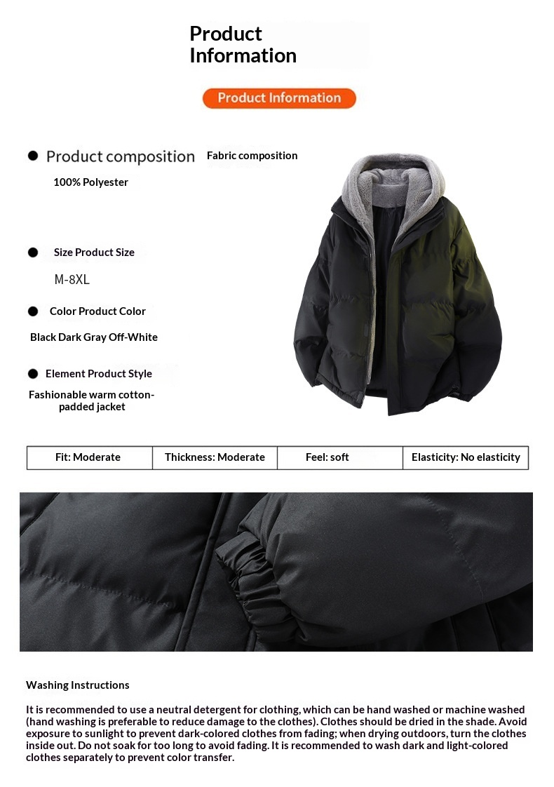 Men’s Winter Padded Fleece Jacket – Loose Fit Two-Piece Style Warm Coat