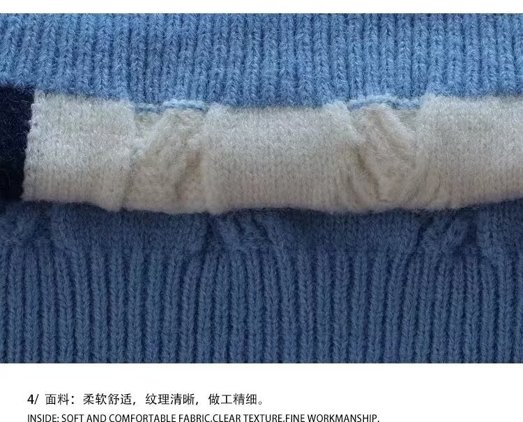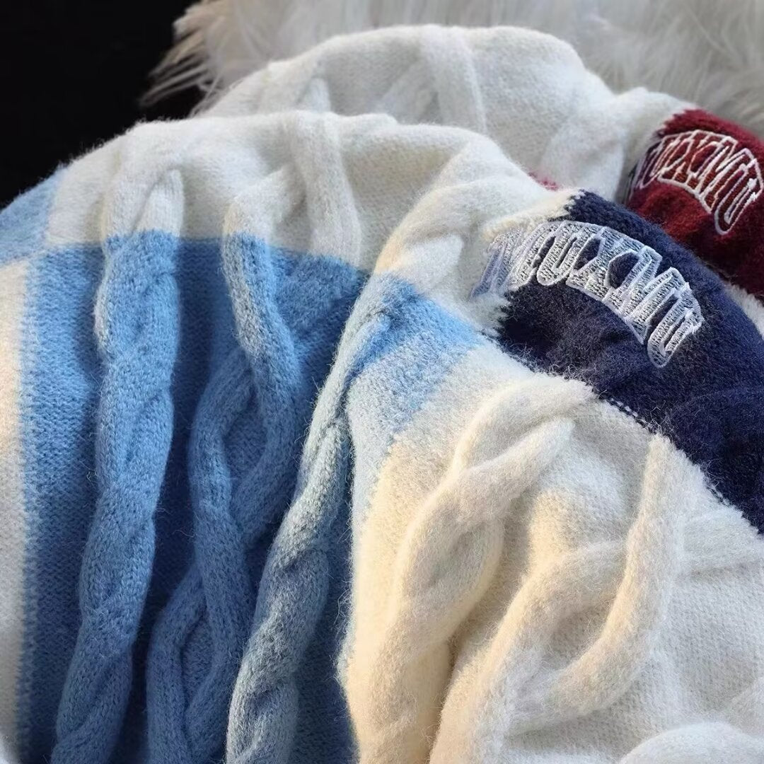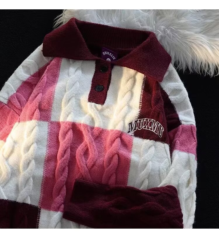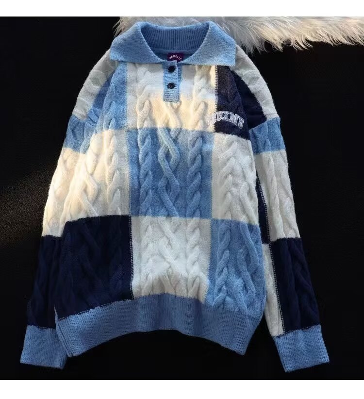 Women’s Contrast-Color Cable-Knit Sweater with Turn-Down Collar – Casual Knitwear