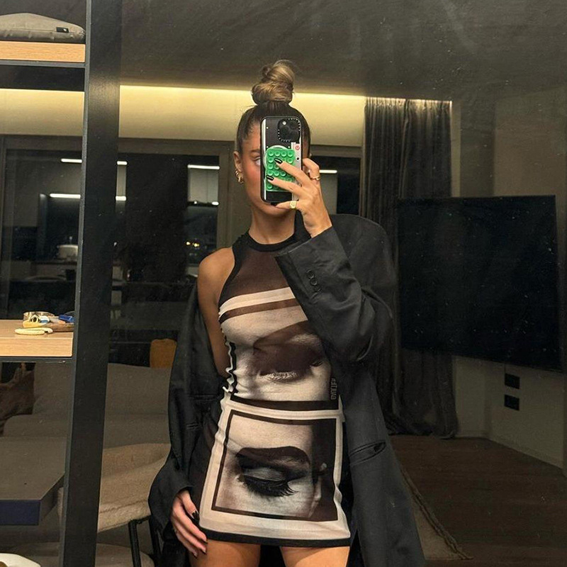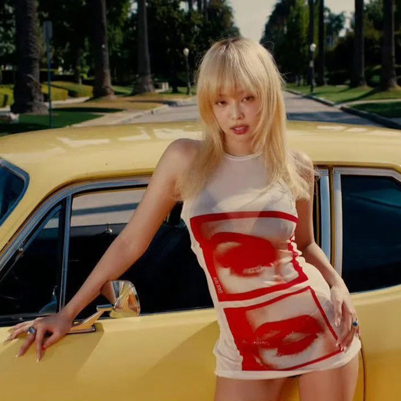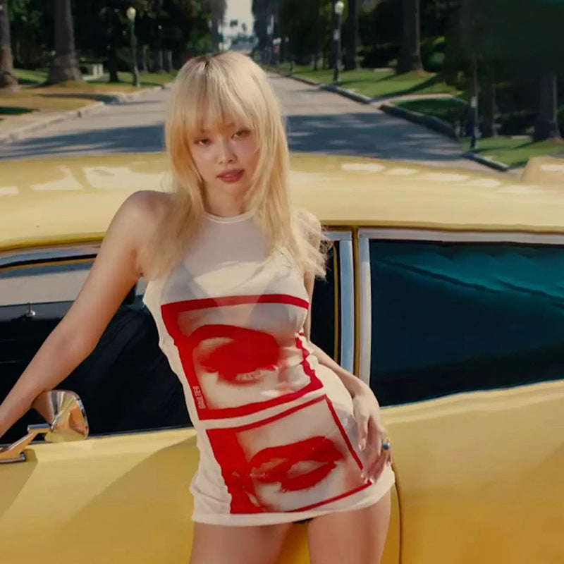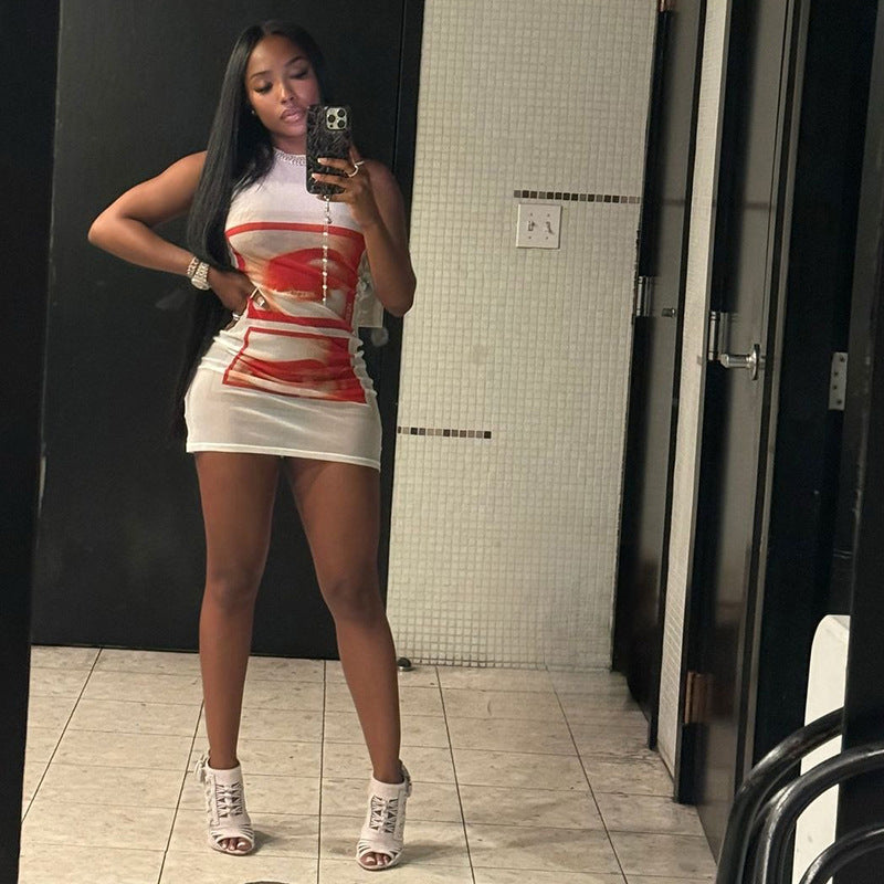 Women’s Sheer Slim-Fit Printed Sleeveless Top – Fashionable Hot Girl Casual Tank